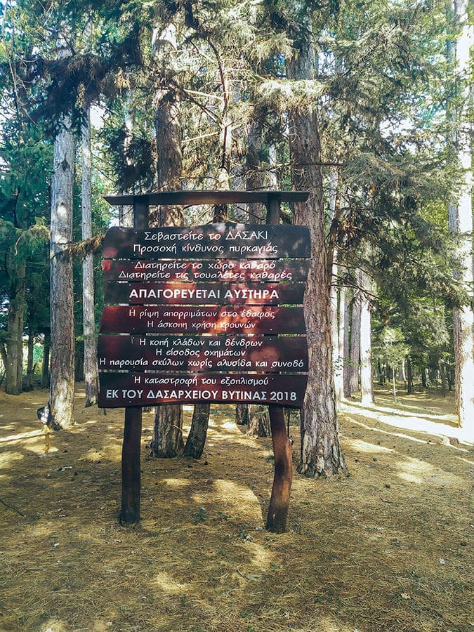 Πριν επιστρέψετε στο χωριό, βρείτε την είσοδο για το δασάκι της Βυτίνας στο τέλος του διπλανού δρόμου. Χαθείτε στα χωμάτινα μονοπάτια του, κάντε πικ-νικ δίπλα από την παιδική χαρά στο κέντρο του ή διαβάστε ένα βιβλίο καθισμένοι στον κορμό κάποιου δέντρου. Ότι και αν επιλέξετε, είμαι σίγουρη ότι θα ξεχάσετε για λίγο τις έννοιές σας και θα νιώσετε την απόλυτη ευφορία.