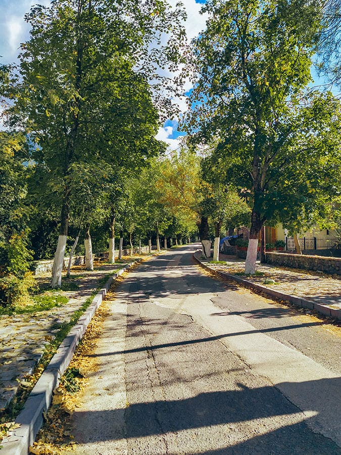 Το παραμυθένιο αυτό δρομάκι έχει συστάδες δέντρων και στις δύο πλευρές του. Ως αποτέλεσμα, δημιουργείται ένα πέρασμα για το δροσερό αέρα που κατεβαίνει από το όρος Μαίναλο και περνάει ανάμεσά τους.