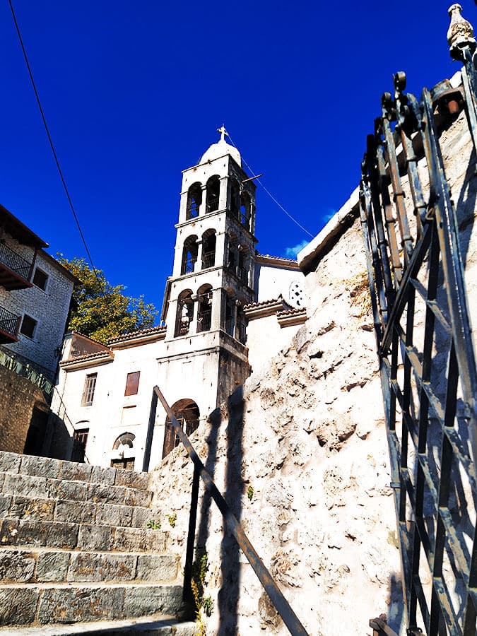 Αν περπατήσετε λίγο πιο πάνω θα βρείτε και το αναστηλωμένο σπίτι του Παλαιών Πατρών Γερμανού με υπέροχη θέα προς το χωριό και αρκετές πληροφορίες για την ιστορία.