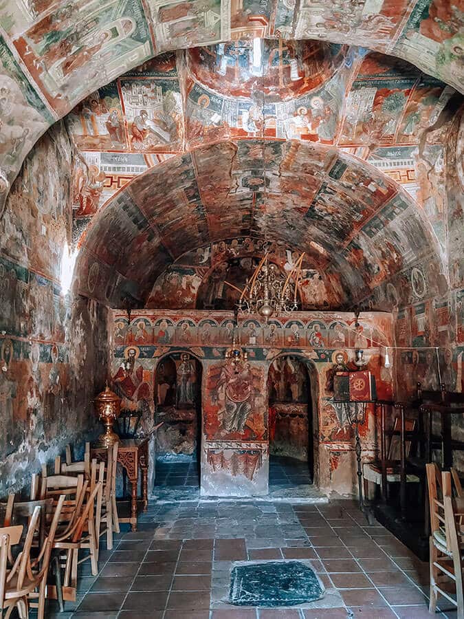 Ένα τρίτο εκκλησάκι που θα σας κινήσει την περιέργεια, είναι εκείνο των τριών Ιεραρχών που κτίστηκε το 1715 και είναι περιτριγυρισμένο από δέντρα. Εκεί, θα ξεχωρίσετε την πλατυτέρα που είναι ζωγραφισμένη στην κόγχη του Ιερού.