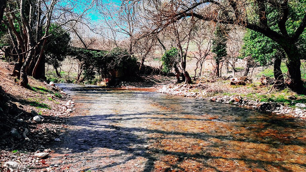 Πιο έξω από το χωριό, στην άκρη ενός χωματόδρομου, ανακαλύψτε τον παλιό νερόμυλο με το πέτρινο γεφυράκι και τα γάργαρα νερά του Μανεσαϊκού που σε ηρεμούν.