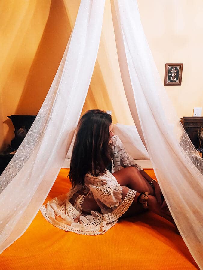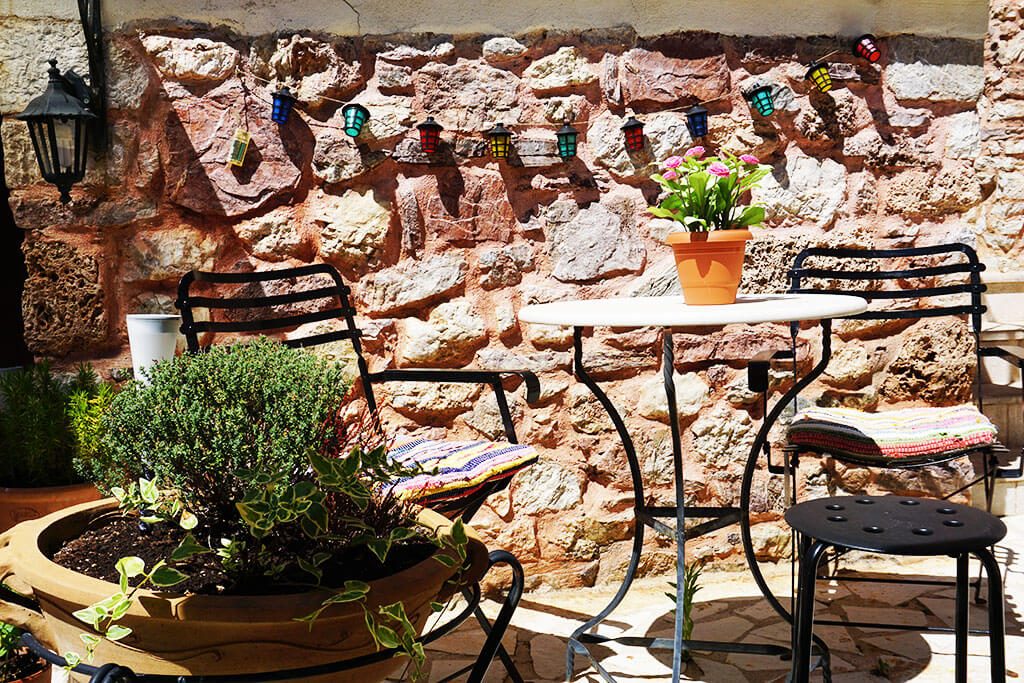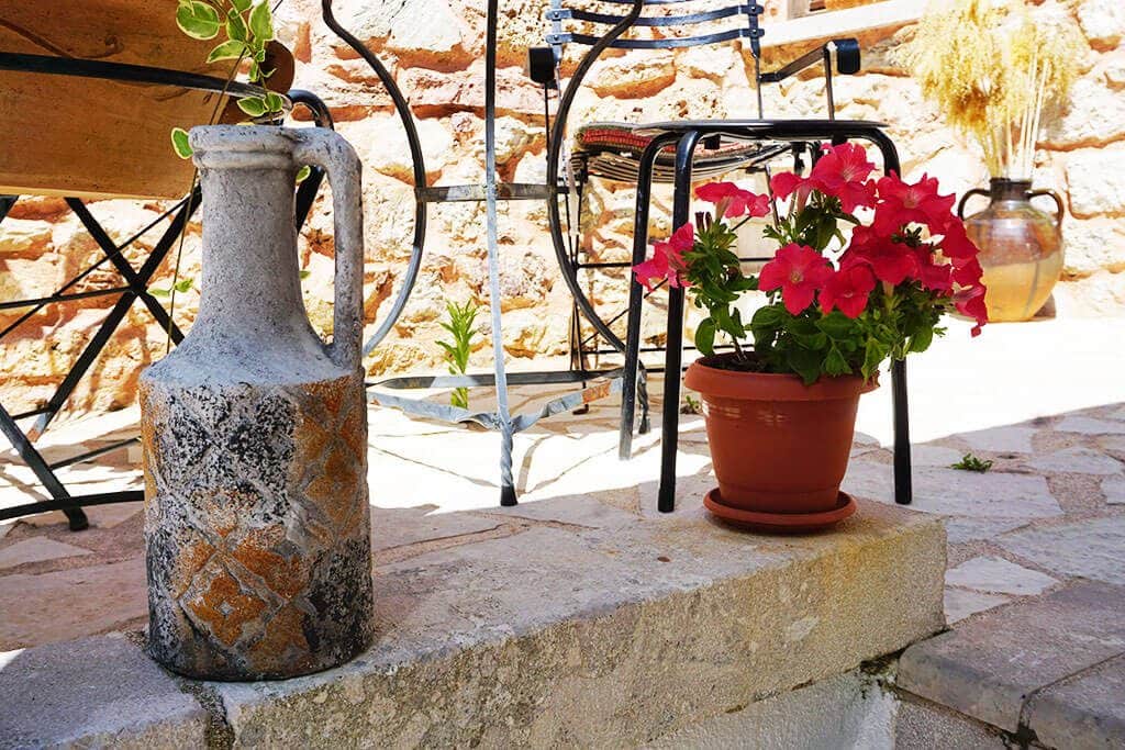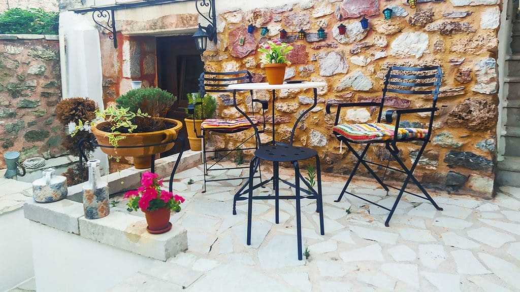 Πριν ξεναγηθούμε, όμως, στα δωμάτια, ένας καφές στην μικρή αυλή είναι ό,τι πρέπει. Η διακόσμηση μαγεύει για άλλη μια φορά και οι λεπτομέρειες κάνουν τη διαφορά!