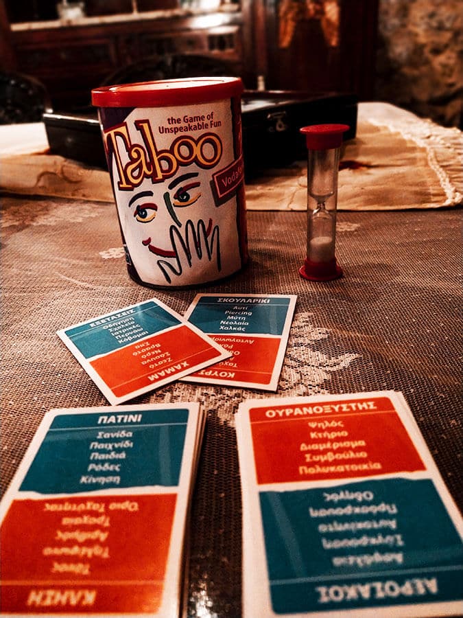Το καλύτερο απ’ όλα, όμως, είναι το γεγονός ότι μέσα σ’ ένα παλιό μπαούλο θα βρείτε επιτραπέζια παιχνίδια που θα σας ψυχαγωγήσουν για ώρες. (Διαλέξτε το taboo!!)