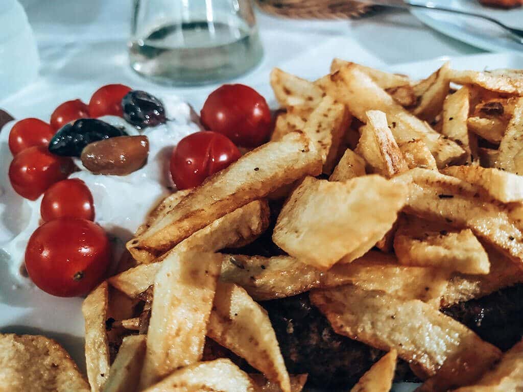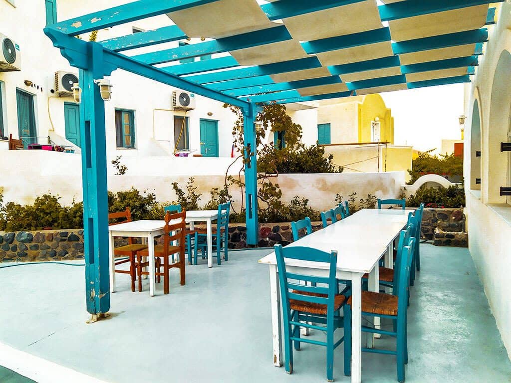 Όσο για το φαγητό, στο εστιατόριο, θα γευτείτε νόστιμα εδέσματα φτιαγμένα με φρέσκα υλικά από το μποστάνι και με μια νησιώτικη πινελιά! Προτείνω να δοκιμάσετε τους ντοματοκεφτέδες που αποτελούν και τοπικό πιάτο της Σαντορίνης!