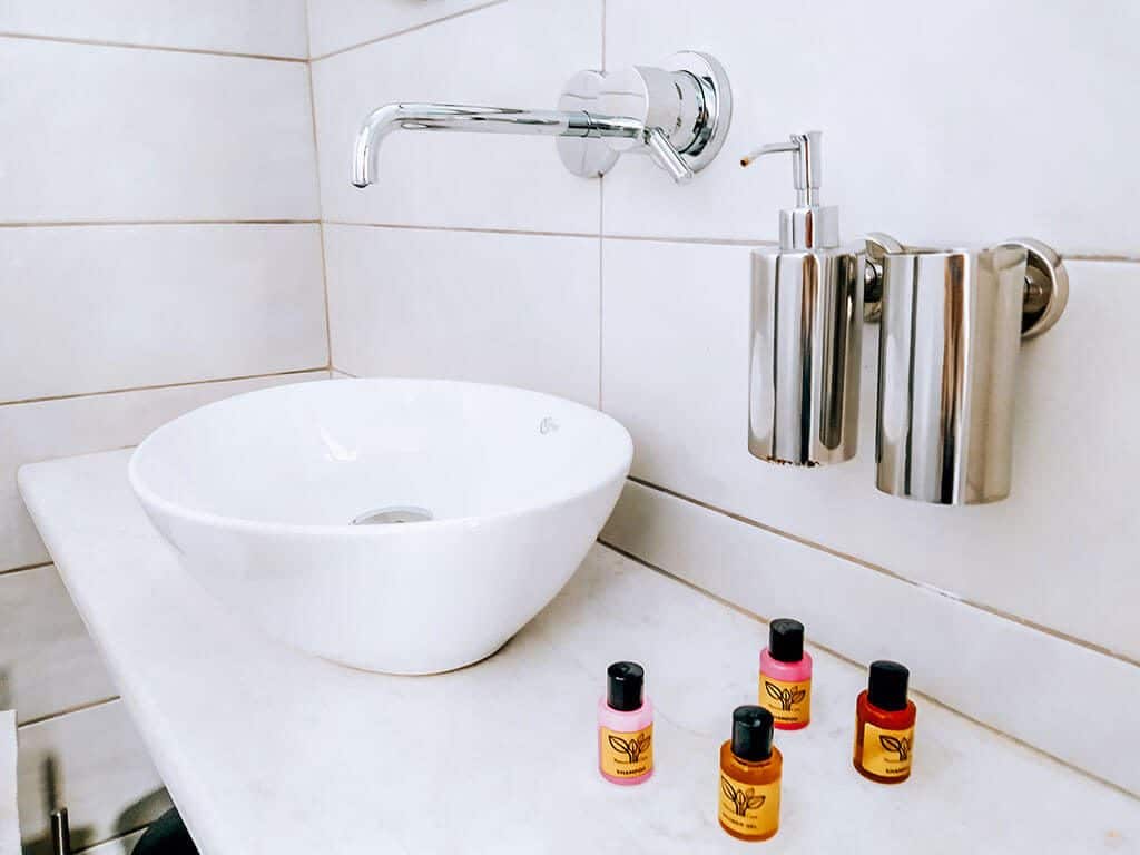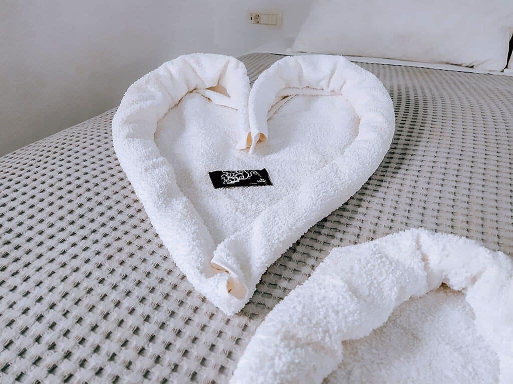 Λόγω covid-19 στο δωμάτιο υπήρχε και αντισηπτικό! Επιπλέον, αγάπησα τις πετσέτες σε σχήμα καρδιάς και το διαφανές ψυγείο!