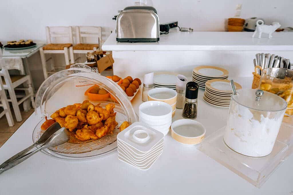 Η κ. Εύα, θα σας ετοιμάσει για πρωινό γευστικούς λουκουμάδες, σπιτικές μαρμελάδες και γλυκά του κουταλιού από υλικά που προέρχονται κατευθείαν από το μποστάνι της. Στο μπουφέ, θα βρείτε πολλών ειδών φρέσκα καλούδια για να επιλέξετε και να ξεκινήσετε την ημέρα σας με ενέργεια.